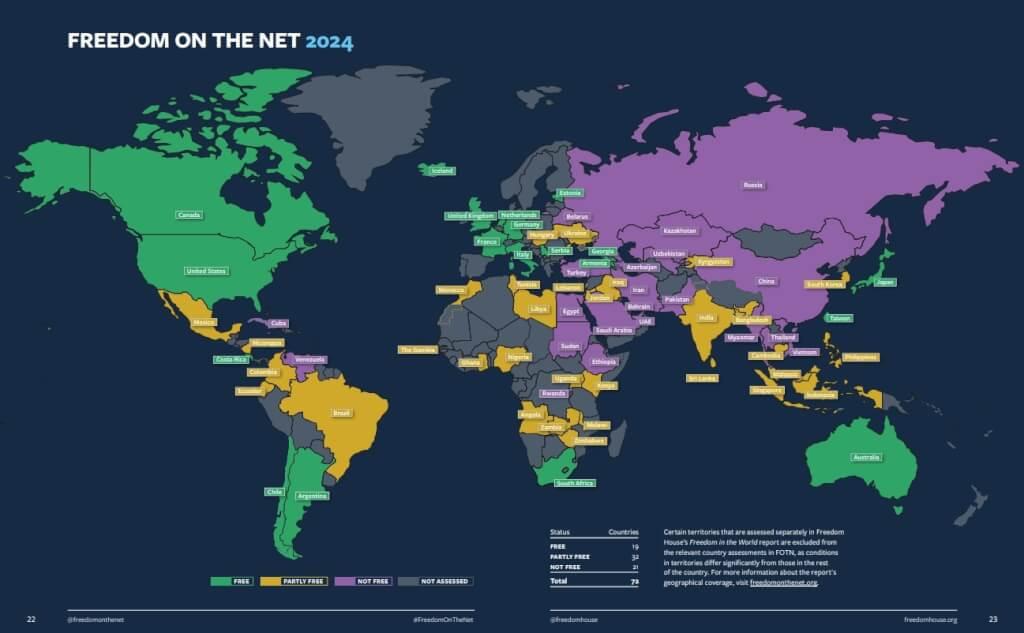 Freedom House today published its annual report on Internet freedom in 72 countries worldwide.