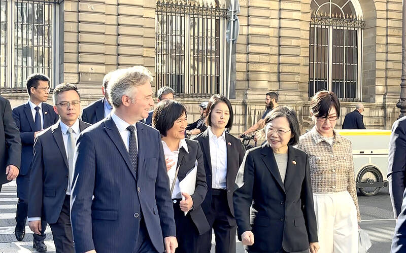 Former president Tsai Ing-wen (蔡英文) on Wednesday met with a group of current and former members of the French Parliament in Paris, as part of a European tour that has drawn protests from Beijing.