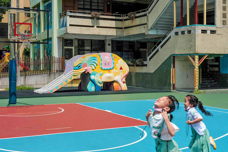 Yu, a writer, said the idea for the project was ignited by a visit to her old elementary school in Changhua County’s Lukang Township (鹿港) where the sight of the elephant slide sparked intense nostalgia in her.