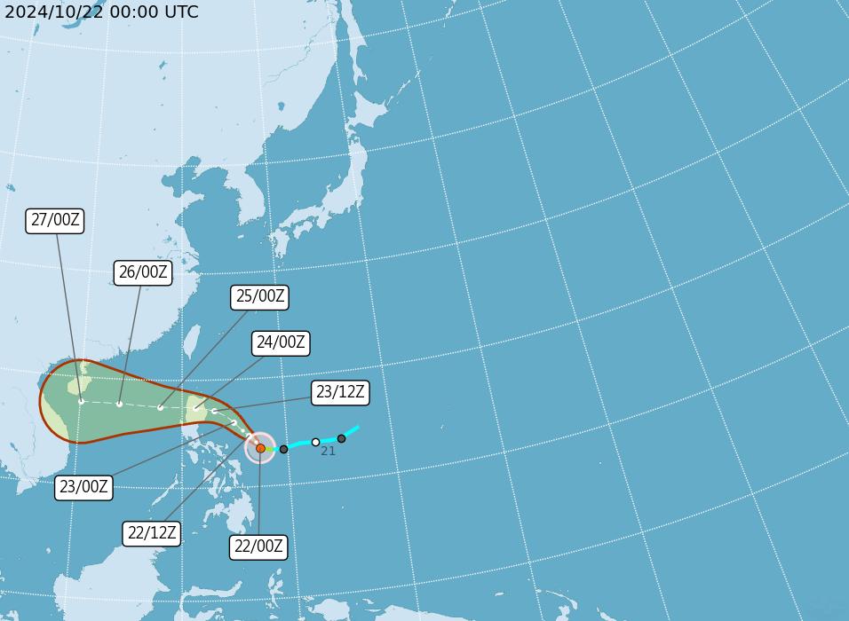 As of 8am, Trami's center was 700km east of Manila, or 1,180km southeast of Oluanpi (鵝鑾鼻) (Taiwan's southernmost point), moving in a northwestern direction.