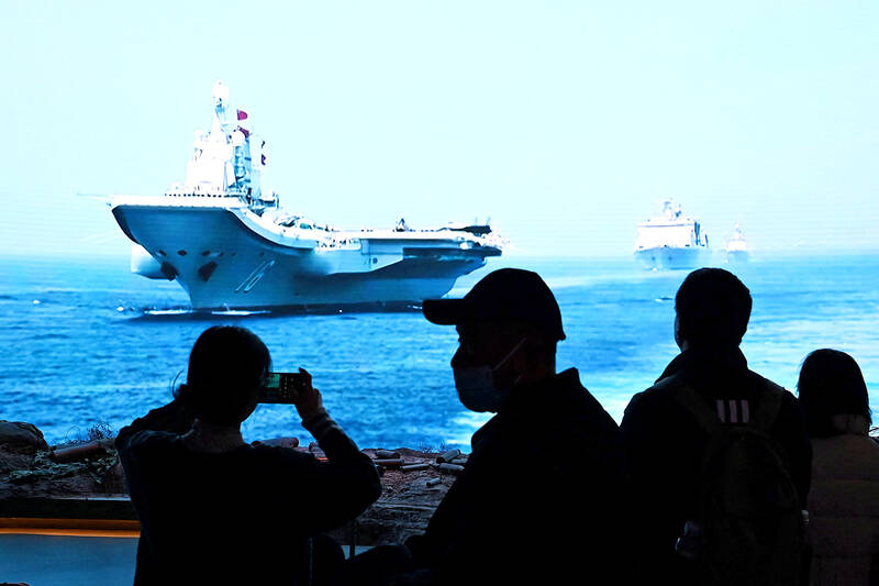 It appeared to be returning to Qingdao port in eastern China via the Pratas Islands (Dongsha Island, 東沙島), in the northern part of the South China Sea, for “replenishing and necessary maintenance,” said Jiang Hsin-biao (江炘杓), a retired navy captain at the Taipei-based Institute for National Defense and Security Research think tank.
