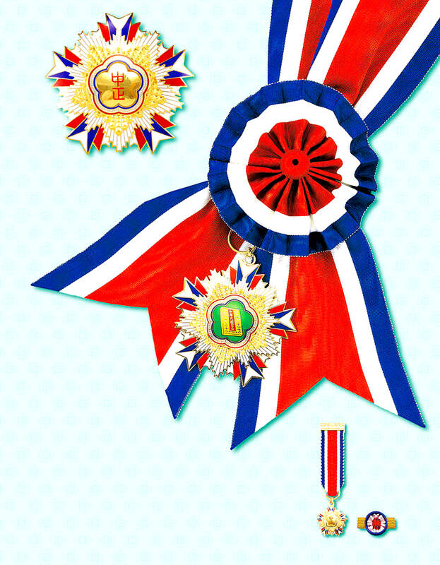 One of five civilian orders issued by the government, the Order of Chiang Chung-cheng with Grand Cordon can be awarded by the president to people for their “outstanding achievement in implementing the Three Principles of the People,” “outstanding contribution in debunking communism and the building of the nation,” “outstanding performance in the rehabilitation of Chinese culture” or “outstanding services in implementing the democratic constitution,” it said.