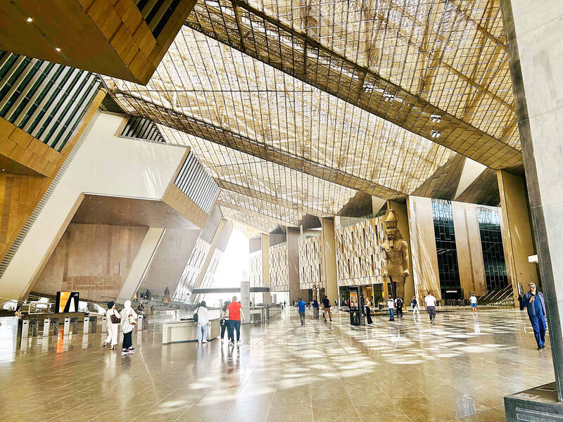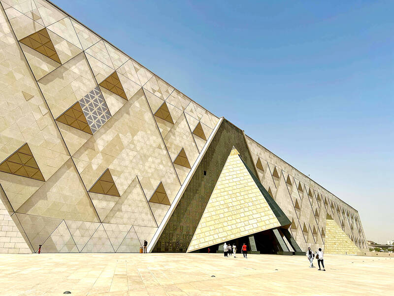 After years of delay, the Grand Egyptian Museum in Cairo was unveiled in a limited soft opening on Wednesday last week, finally giving people a peek at the design concept of Taiwanese-American architect Peng Shih-fu (彭士佛) and his wife, Roisin Heneghan.