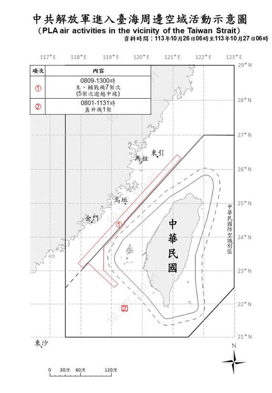 The MND said it had detected 19 Chinese military aircraft, including Su-30 fighter jets, carrying out a “joint combat readiness patrol” around Taiwan in conjunction with Chinese warships starting yesterday morning.
