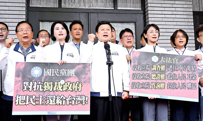 “We will neither succumb to President William Lai’s (賴清德) despotic administration, nor revise the laws pursuant to the constitutional ruling made by ‘green’ justices,” he said, referring to the color associated with the DPP.