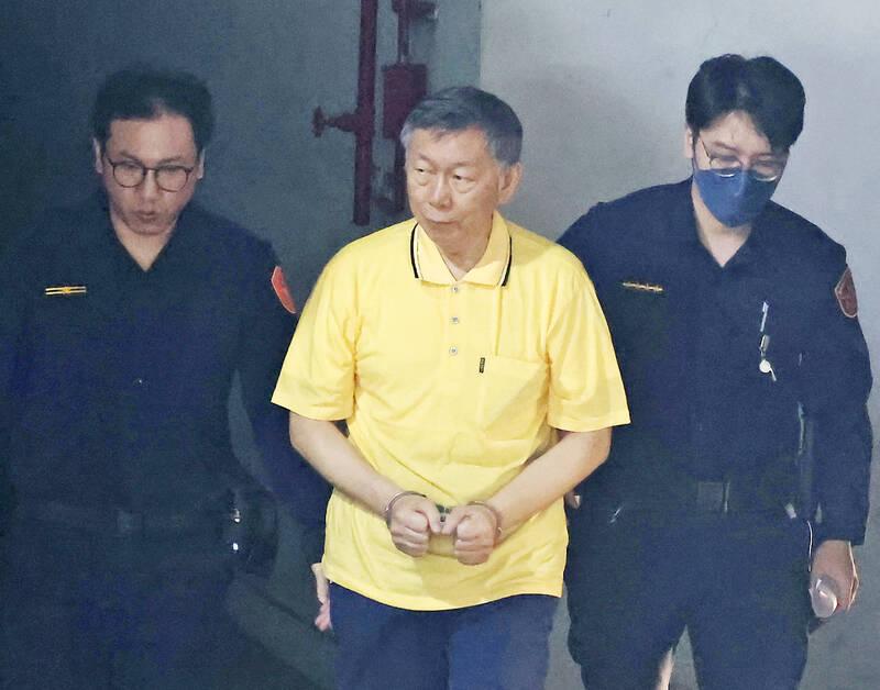 The Taipei District Court today agreed to extend the detention of Taiwan People's Party (TPP) Chairman Ko Wen-je (柯文哲) on suspicion of accepting bribes from real-estate developers during his tenure as Taipei mayor.
