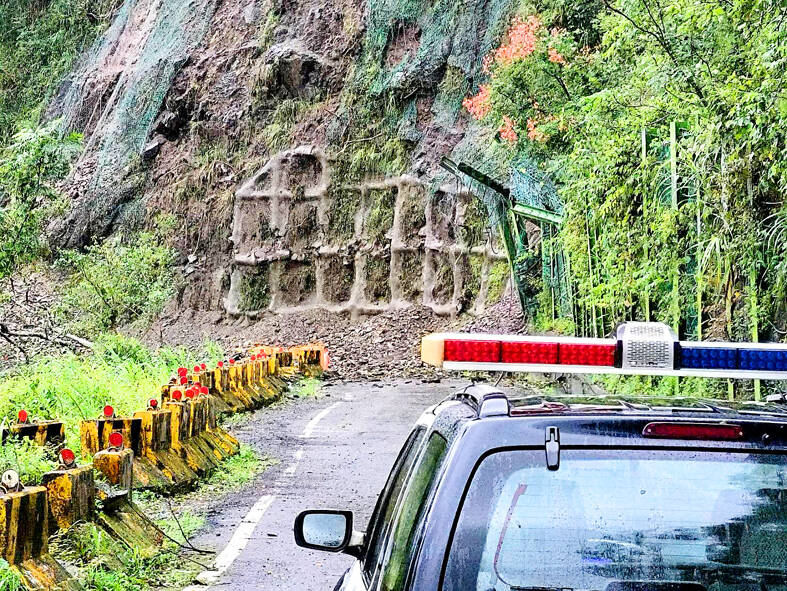Torrential rain in Yilan County’s Toucheng Township (頭城) sent mud and rocks flowing into a building in a resident’s backyard.