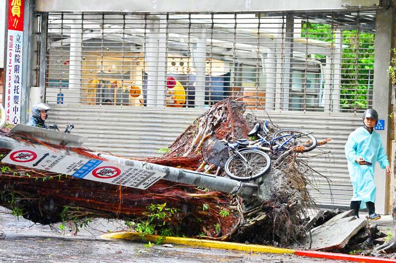 The second death was reported at 8pm in Taipei on Thursday after a 48-year-old man was killed by a utility pole. The man was reportedly hit by the pole, which was brought down by a falling tree, while he walked around Neihu District (內湖).