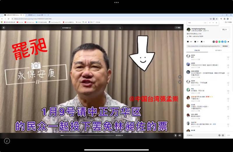 Chang and his wife, surnamed Hung (洪), were formally indicted under Article 4 of the Anti-Infiltration Act (反滲透法), Article 43 of the Presidential and Vice Presidential Election and Recall Act (總統副總統選舉罷免法) and Article 45 of the Public Officials Election and Recall Act (公職人員選舉罷免法), the Chiayi District Prosecutors’ Office said.