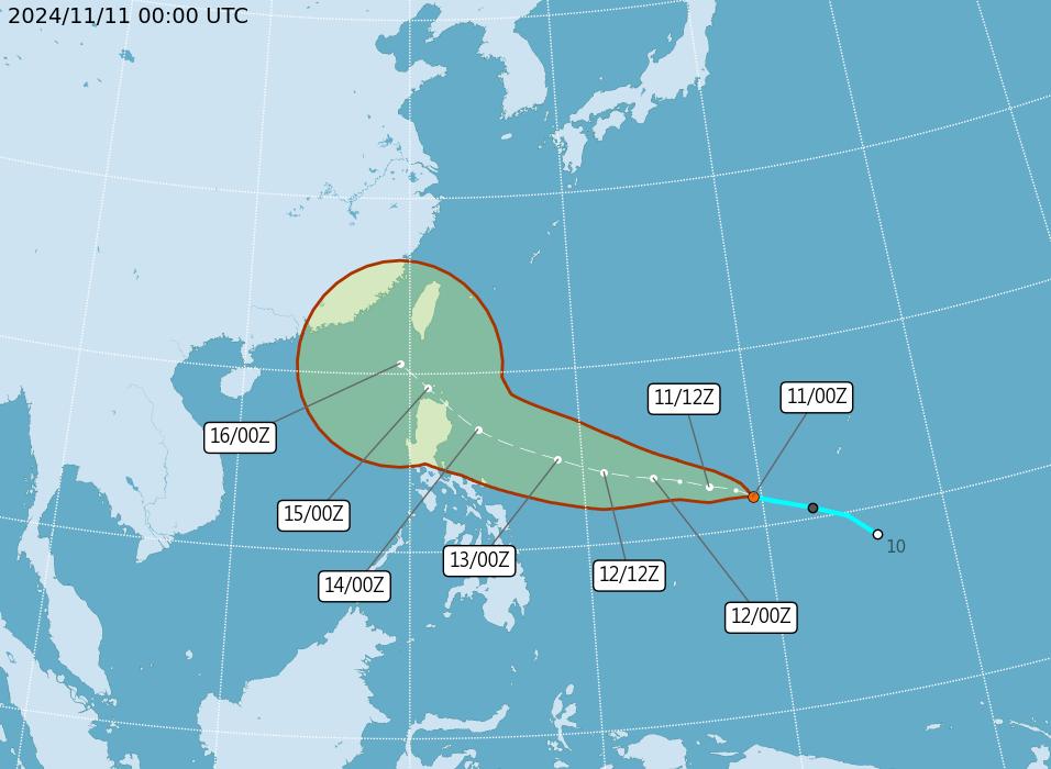 The storm’s outer bands are expected to affect Taitung and the Hengchun Peninsula (恆春) in the latter part of the week, although rain forecasts for the weekend are to depend largely on its path, he added.
