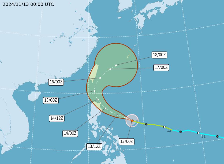 Because of its rapid speed — 28kph as of 8am — a sea warning for the storm could be issued tonight, rather than tomorrow, as previously forecast, the CWA said.