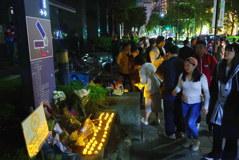 HORROR STORIES: One victim recounted not realizing they had been stabbed and seeing people bleeding, while another recalled breaking down in tears after fleeing A man on Friday died after he tried to fight the knife-wielding suspect who went on a stabbing spree near two of Taipei’s busiest metro stations, Taipei Mayor Chiang Wan-an (蔣萬安) said. The 57-year-old man, identified by his family name, Yu (余), encountered the suspect at Exit M7 of Taipei Main Station and immediately tried to stop him, but was fatally wounded and later died, Chiang said, calling the incident “heartbreaking.” Yu’s family would receive at least NT$5 million (US$158,584) in compensation through the Taipei Rapid Transit Corp’s (TRTC) insurance coverage, he said after convening an emergency security response meeting yesterday morning. National