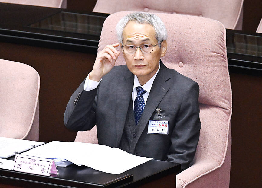 Chou made the pledge in his briefing to the legislature in a plenary session, during which lawmakers reviewed the qualifications of President William Lai’s (賴清德) Examination Yuan nominations.