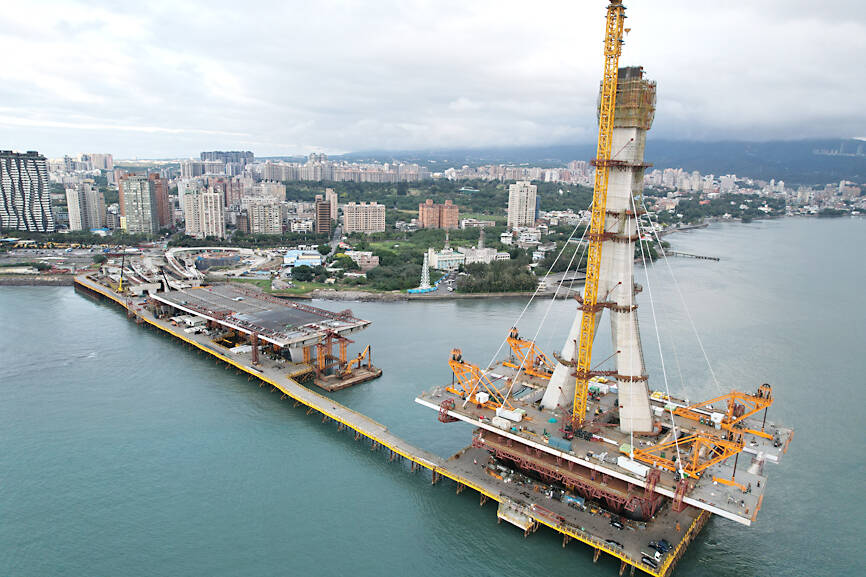 Tamkang Bridge (淡江大橋) would be another major national landmark when it opens for traffic in 2026, Minister of Transportation and Communications Chen Shih-kai (陳世凱) said yesterday.