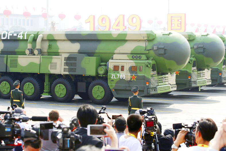 Beijing is strengthening the striking power of its nuclear triad in the form of the Chinese People’s Liberation Army (PLA) air force, navy and rocket force, Tung Hui-ming (董慧明), an associate professor of Chinese military studies at National Defense University, wrote in the report.