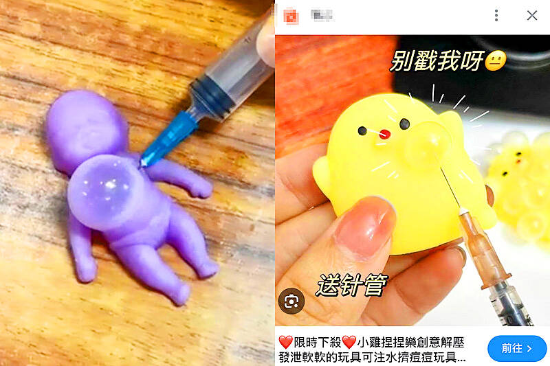 However, as the toy contains a syringe with a sharp needle, it does not meet the safety standards for toys, which forbid sharp edges, ministry Bureau of Standards, Metrology and Inspection deputy head Hsieh Han-chang (謝翰璋) said, adding that the bureau has asked e-commerce platforms to remove the toys from their Web sites.