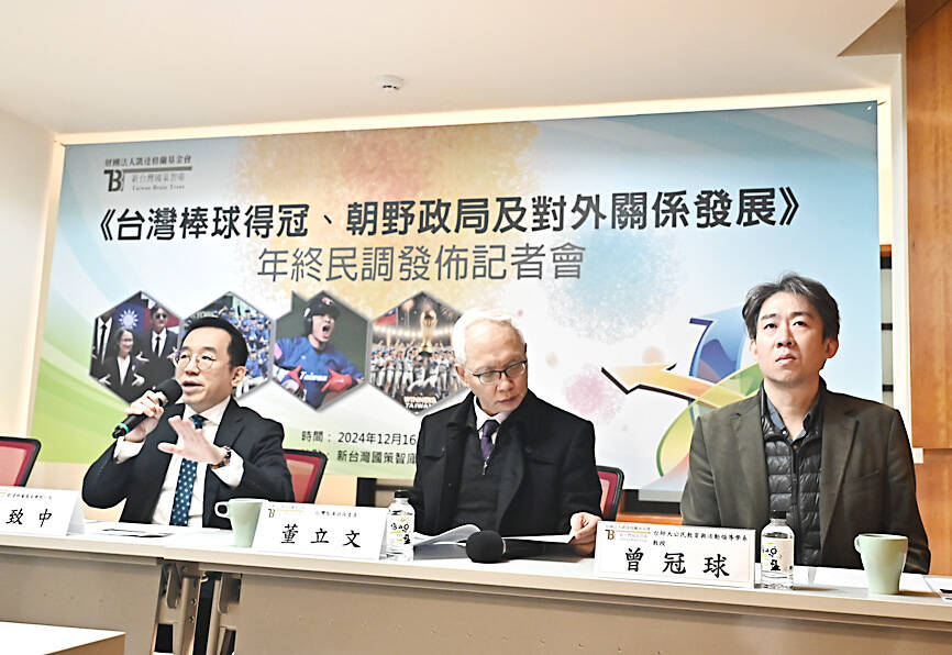 Referring to Taiwan’s victory last month at the World Baseball Softball Confederation’s Premier12, the survey results showed that 89.1 percent of respondents said that Taiwan’s exceptional performance in sporting competitions furthers national unity.
