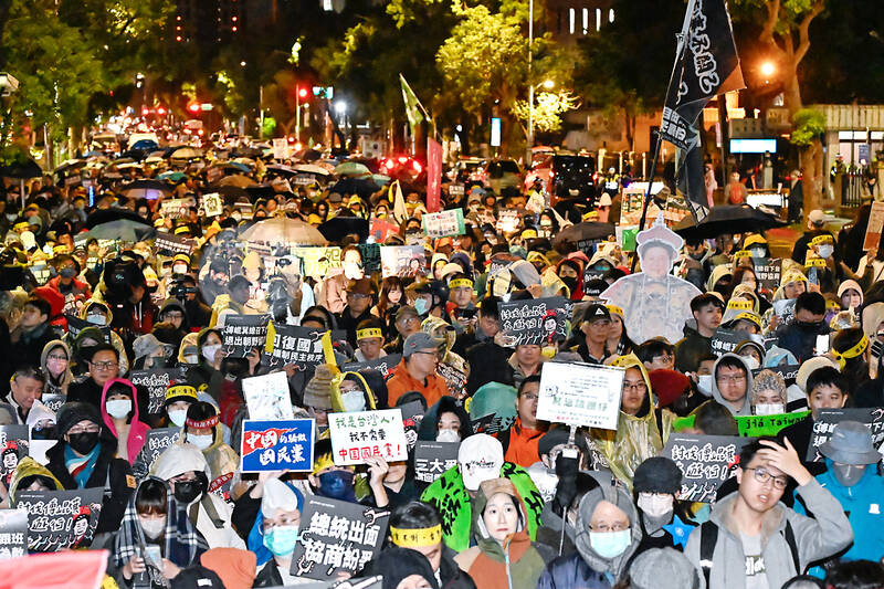 It was the second night of the three-day “Bluebird wintertime action” protests in Taipei, with organizers announcing that 8,000 people attended.