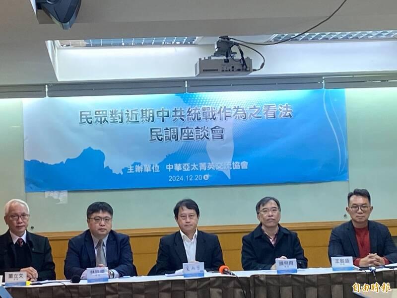The association held a meeting today to discuss the results of the survey, titled “Public perception of China’s recent ‘united front’ tactics,” which was carried out by Dadi Opinion Research using landline telephone calls on Tuesday and Wednesday to survey 1,001 participants over the age of 20, it said.
