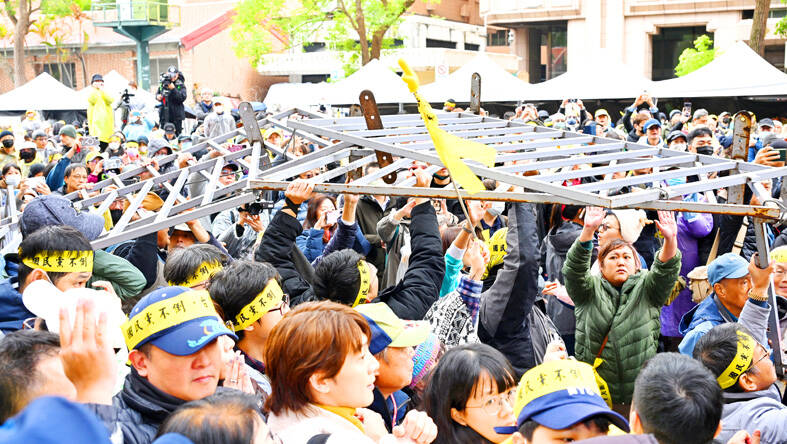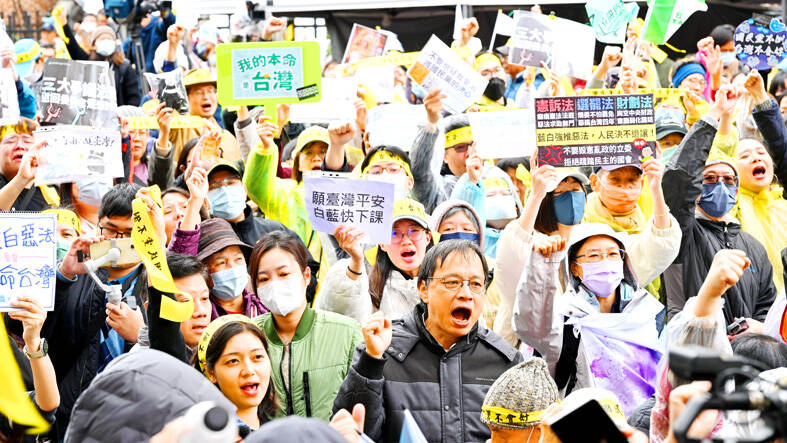 Dubbed the “Bluebird wintertime action,” the protests were organized by Taiwan Citizen Front and the Economic Democracy Union, with other groups, independence advocates and members of small political parties, including the New Power Party (NPP), the Taiwan Statebuilding Party, the Green Party and the Taiwan Obasang Political Equality Party attending.