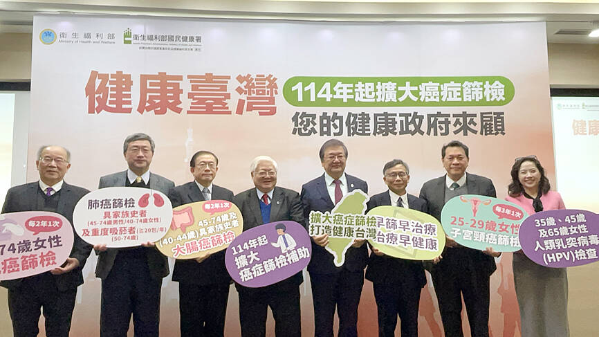 The Health Promotion Administration (HPA) is to expand eligibility for subsidies for cervical cancer, breast cancer, colorectal cancer and lung cancer screenings, Chiu said.