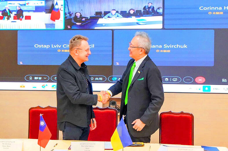 Deputy Minister of Foreign Affairs Francois Wu (吳志中), who was present at the signing ceremony, said the government would continue to collaborate with the Lviv city government and assist in Ukraine’s efforts to forge ahead in times of difficulty.