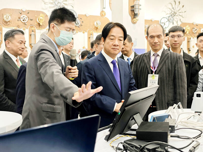 The government is aiming to turn the southern region of Taiwan into a hub for artificial intelligence (AI) development and expand its applications in various sectors, President William Lai (賴清德) said in Tainan yesterday.