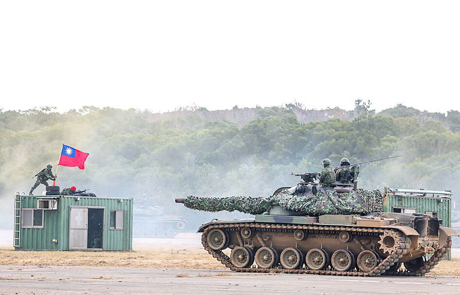 The drills began in the north with tank maneuvering at a base in Hsinchu County featuring outmoded CM-11 tanks, which are gradually being replaced by newly purchased M1A2T Abrams from the US.