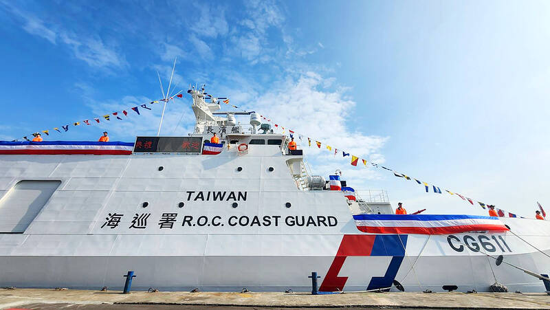 The coast guard yesterday received a 600-tonne corvette, the newest addition to its fleet that is being increasingly tested by Beijing’s “gray zone” tactics. The vessel, the Chang Bin (長濱), was handed over to the Coast Guard Administration (CGA) by its builder, Jong Shyn Shipbuilding Group, during a ceremony presided over by Premier Cho Jung-tai (卓榮泰) in Kaohsiung. The Chang Bin is set to join two other 600-tonne Anping-class corvettes in the Eastern branch of the CGA.