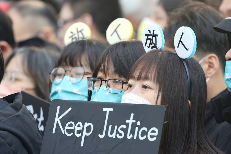 After accepting the party’s leadership, Huang called for the rally yesterday, which was Judicial Day in Taiwan.