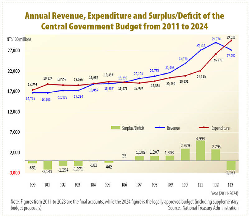 Ruling and opposition parties continued to debate the central government’s proposed 2025 budget with total expenditures of more than NT$3.13 trillion (US$95.1 billion).