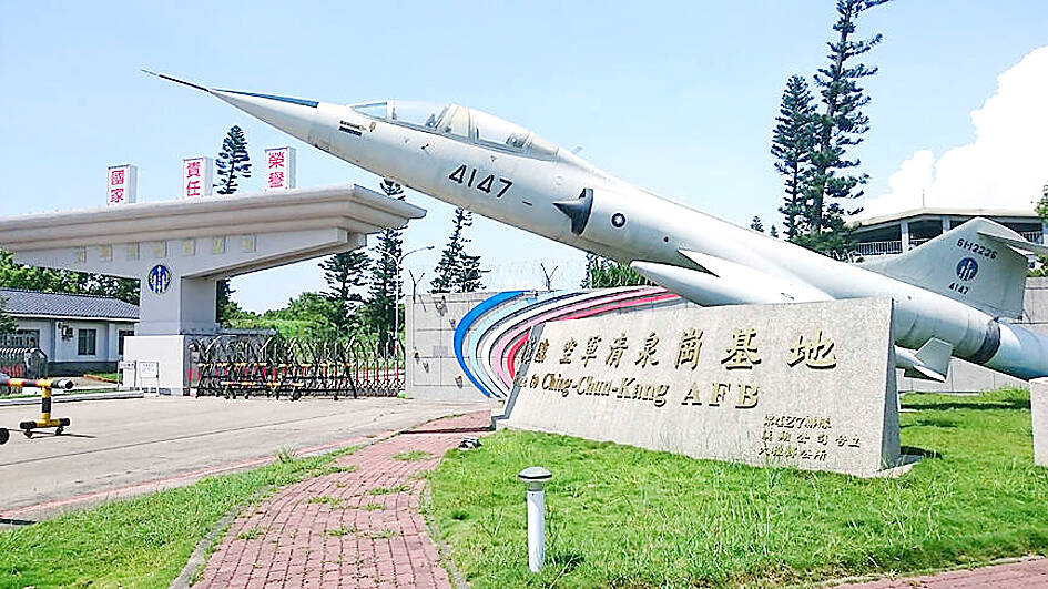 The officer, surnamed Hu (胡), was conducting final landing checks at Ching Chuan Kang (清泉崗) Air Base when she was pulled into the jet’s engine for unknown reasons, the air force said in a news release.