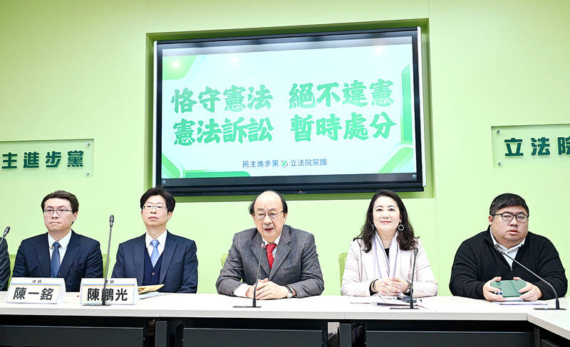 The DPP would file for a court injunction to stop the budget amendments from going into effect as well as request a constitutional interpretation on whether the KMT contravened the state laws governing legislative procedures, DPP caucus whip Ker Chien-ming (柯建銘) said, citing multiple process concerns, such as failing to allow time for deliberation and review.