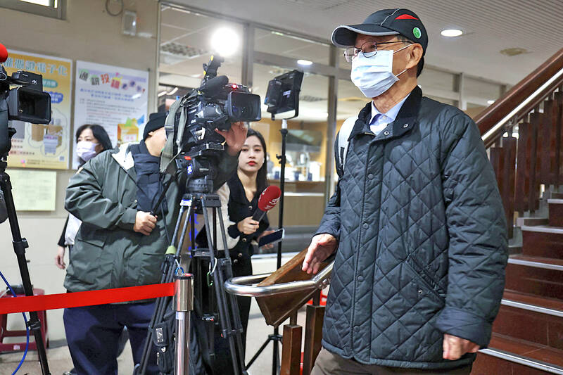Former Taipei deputy mayor Pong Cheng-sheng (彭振聲) was the first defendant brought in, followed by former Taipei Urban Planning Commission executive secretary Shao Hsiu-pei (邵琇珮) and Ko’s presidential campaign finance manager, Lee Wen-tsung (李文宗).