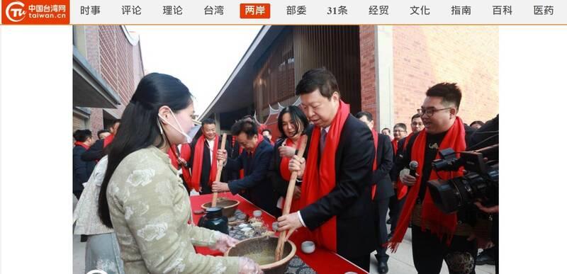 China's Taiwan Affairs Office (TAO) Director Song Tao (宋濤) was joined by Chinese Nationalist Party (KMT) Legislator Chen Yu-jen (陳玉珍) at a cross-strait Lunar New Year event in Xiamen, China yesterday.