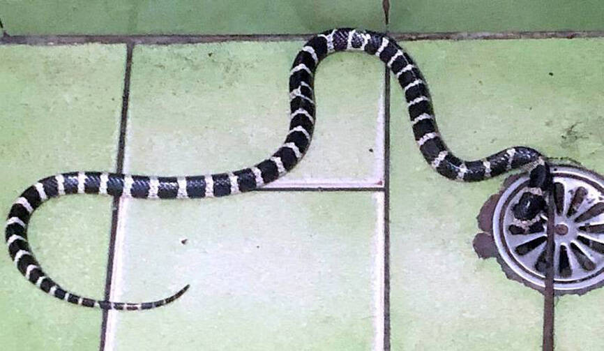 Its body is made up of wide black rings and narrow white rings. Although its venom is highly toxic to humans, it is not an overly aggressive snake, and would only attack if threatened or provoked, it said, adding that if disturbed, the snake would flee quickly or coil its body into a figure eight and bury its head under its body.