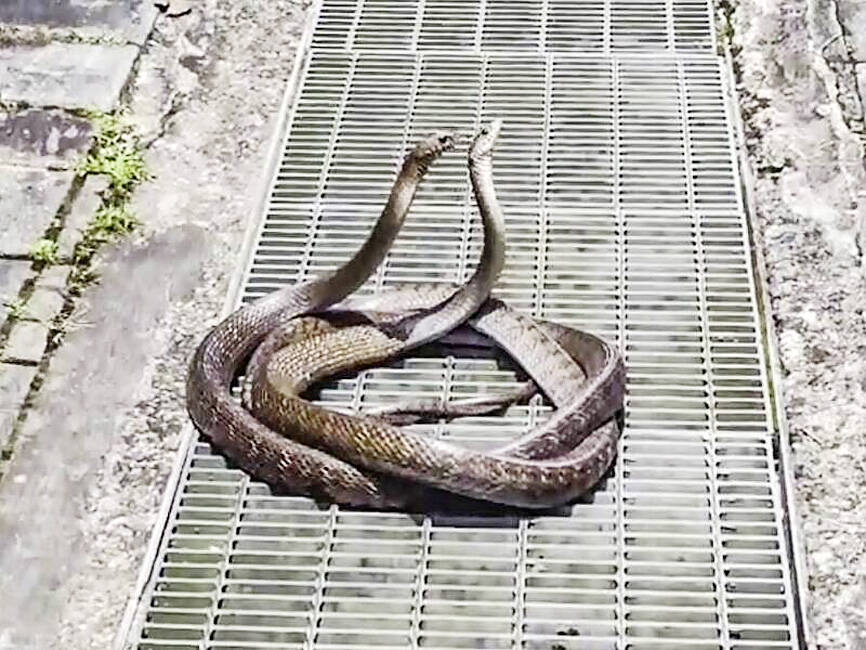 Taiwan’s diverse natural environment has given rise to a rich variety of native snakes, with the six most common types being the Chinese cobra, the Chinese green tree viper, the many-banded krait, the beauty rat snake, the king rat snake and the Oriental rat snake, it said.