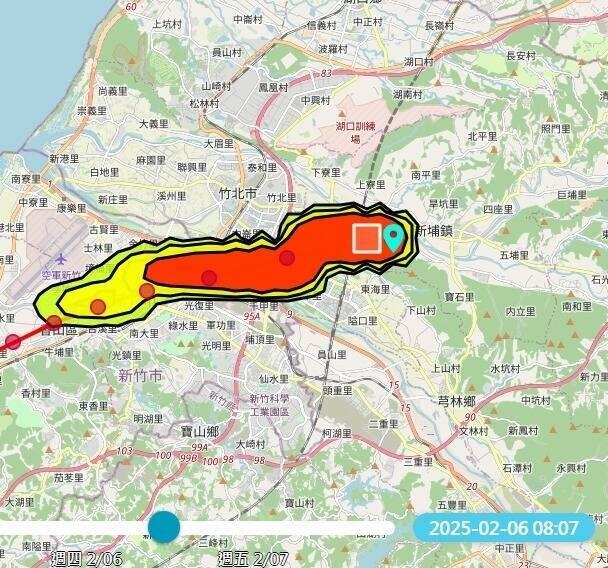 The Hsinchu County Environmental Protection Bureau has carried out air-quality testing and advised caution for certain boroughs in Hsinchu County's Jhubei City (竹北), including Dongsing (東興), Shihsing (十興), Luchang (鹿場) and Doulun (斗崙), as well as northern areas of Hsinchu City including Siangshan District (香山).