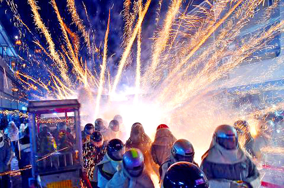 At the Yanshui Beehive Fireworks, traditionally held on the 14th and 15th days of the first month of the lunar calendar, as the temple palanquin moves by, spectators might be struck by “beehive firecrackers” that are believed to “end ill fortune, resolve difficulties and bring good luck for the coming year,” the Tainan Tourism and Travel Bureau said.