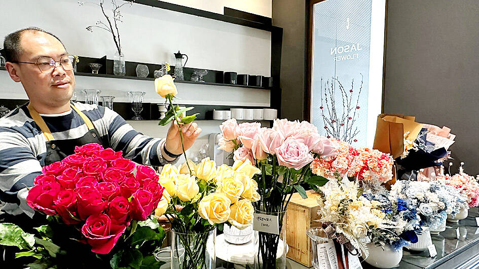 A standard Valentine’s bouquet of fresh flowers costs from NT$1,500 to NT$2,000, and a Valentine’s bouquet of preserved flowers costs about NT$1,000, he said.