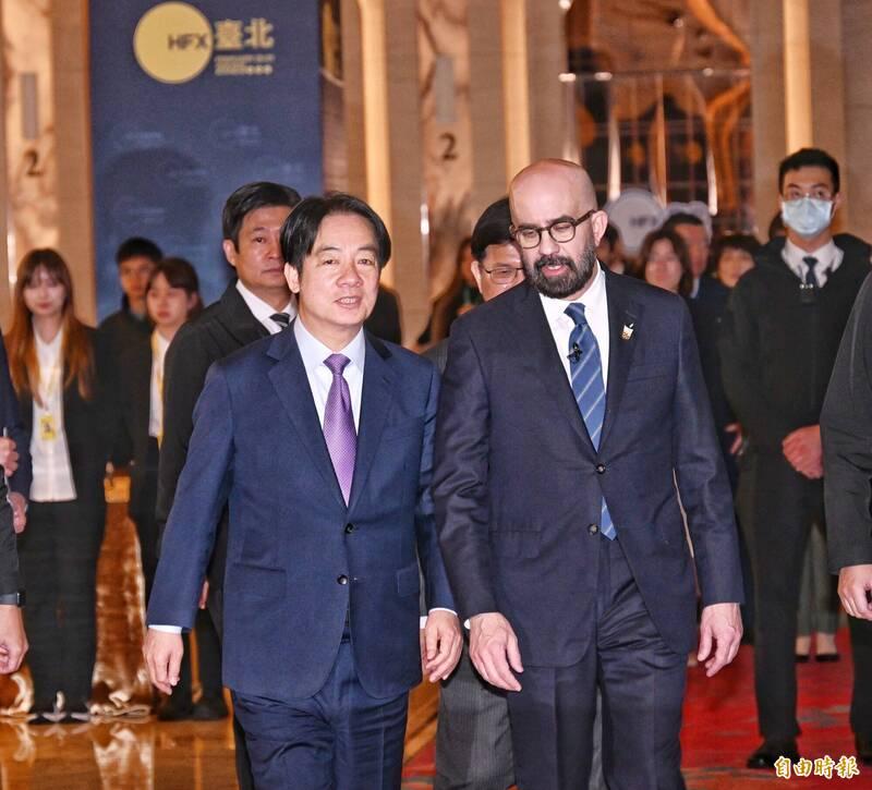 President William Lai (賴清德) said the global democratic camp should be more united against authoritarianism, build a global “non-red supply chain” and “bring back the dawn of peace” as he spoke at the Halifax International Security Forum today.