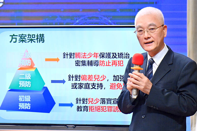 Premier Cho Jung-tai (卓榮泰) pledged to spend NT$7.6 billion (US$231.8 million) over four years until 2028 to prevent adolescent crime.