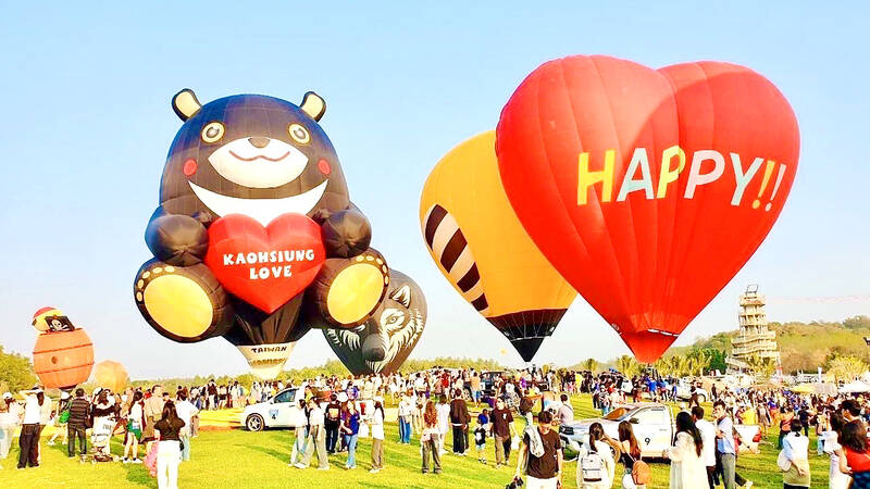A hot air balloon styled after Kaohsiung’s Formosan bear mascot takes part in this year’s Singha International Balloon Fiesta in Chiang Rai, Thailand, in an undated photograph. The fiesta ran from Feb. 13 to Monday last week. It was the first time the mascot-themed balloon representing Kaohsiung took part in an overseas event, the Kaohsiung City Government said, expressing the hope that its particpation would bring more exposure and attention to Kaohsiung and Taiwan.