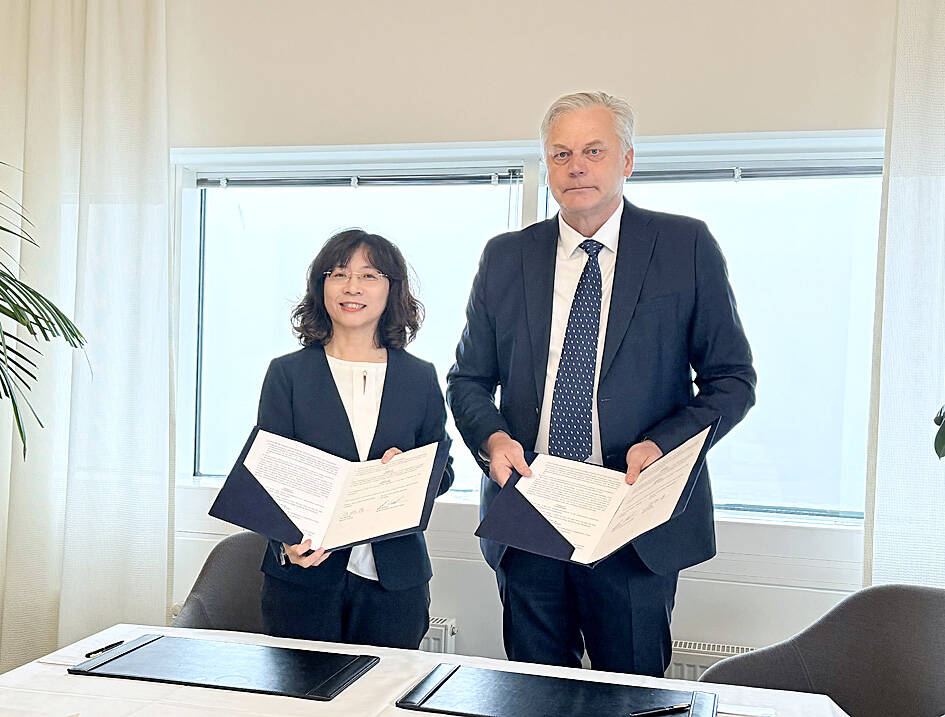 The agreement, which allows the Taiwanese and Finnish governments to appoint multiple companies to operate up to 14 round-trip passenger flights and cargo services per week, was signed by CAA Director-General Ho Shu-ping (何淑萍) and her Finnish counterpart, Jari Pontinen, the agency said.