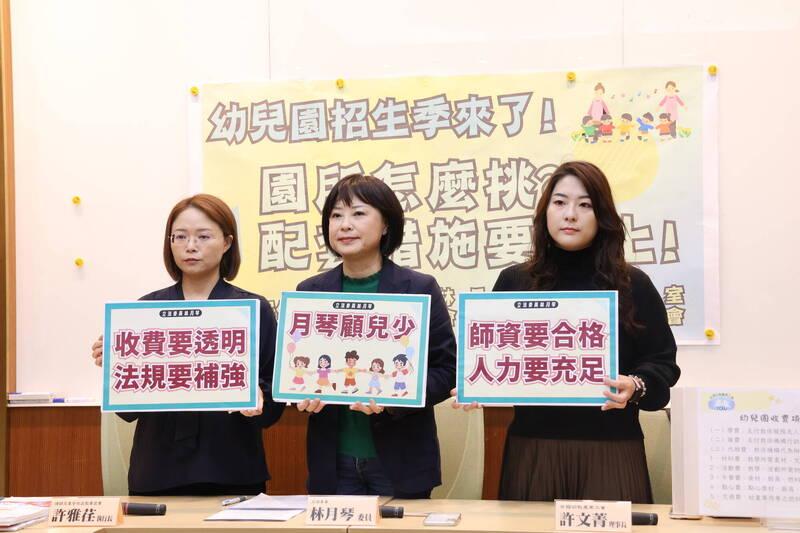 As kindergarten enrollment season begins this month and scandals involving misconduct in schools become more frequent, Lin held a news conference at the legislature this morning with the Taiwan Early Childhood Education Union (TCEU) and the Jing Chuan Child Safety Foundation to discuss kindergarten safety.
