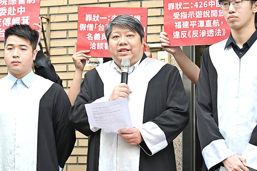 A civic organization and a group of lawyers filed a judicial complaint with the High Prosecutors’ Office in Taipei yesterday against Chinese Nationalist Party (KMT) caucus whip Fu Kun-chi (傅?萁), accusing him of treason and contravening the Anti-Infiltration Act (反滲透法).