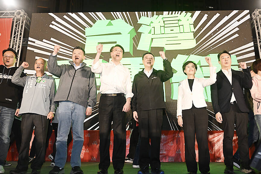 Premier Cho Jung-tai (卓榮泰) led several Cabinet members on stage, including Vice Premier Cheng Li-chun (鄭麗君) and Minister of Transportation and Communications Chen Shih-kai (陳世凱), who took turns to speak about the government’s budget and its policies
