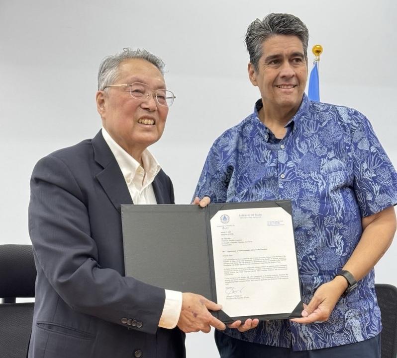 In a statement, the foundation, which was also established by Shih to help boost Taiwan's long-term sustainability and competitiveness, said the Acer founder received a senior economic advisor certificate from Palau President Surangel Whipps Jr today.