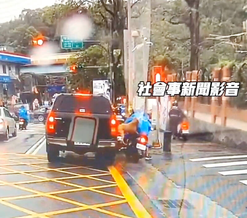 On March 6 on Wanmei Street Section 2 in Taipei’s Wenshan District (文山), the same dog was allegedly involved in a near identical attack, in which it rolled down the window of the truck at a stoplight, jumped out and attacked a nearby motorcyclist surnamed Huang (黃).