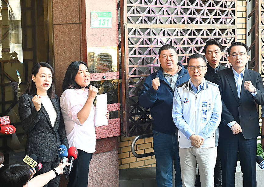 Chinese Nationalist Party (KMT) legislators Chen Yu-jen (陳玉珍) and Lo Chih-chiang (羅智強) yesterday went to the Taipei District Prosecutors’ Office to file a judicial complaint requesting an investigation into alleged signature violations by a citizen group leading the campaign to recall Taipei KMT Legislator Wang Hung-wei (王鴻薇).